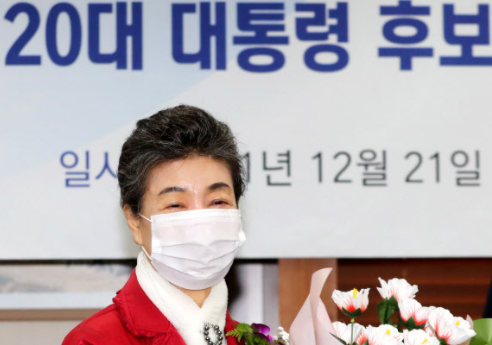 박근령, 대선 출마 선언 (서울=연합뉴스) 이정훈 기자 = 박근령 전 육영재단 이사장이 21일 오전 서울 중구 한국프레스센터에서 열린 20대 대통령 선거 출마 선언 기자회견에서 꽃