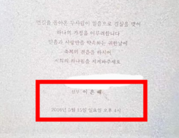 지난 17일 커뮤니티에 게시된 ‘이은해 2016년 결혼식’이라는 글에 따르면 이은해와 남성 A 씨는 인천 연수구의 한 대형 한식당에서 하객들을 불러놓고 결혼식을 올렸으나 이은해가 A 씨와 결혼 직후 동거남이 있다는 사실이 탄로 나 파혼하게 됐다는 내용도 글에 담겼습니다.